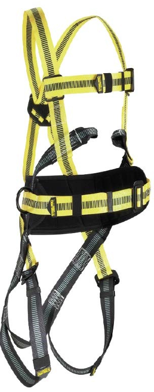 • Adjustable harness with dorsal and front attachment and adjustable positioning belt with lateral fastening rings according to EN358.