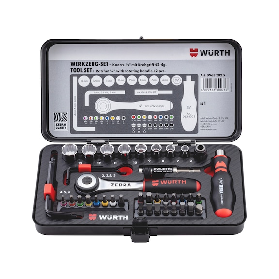 Tool set of 42 pieces including high-quality metal box and innovative ZEBRA tools, ideal for a wide range of applications
